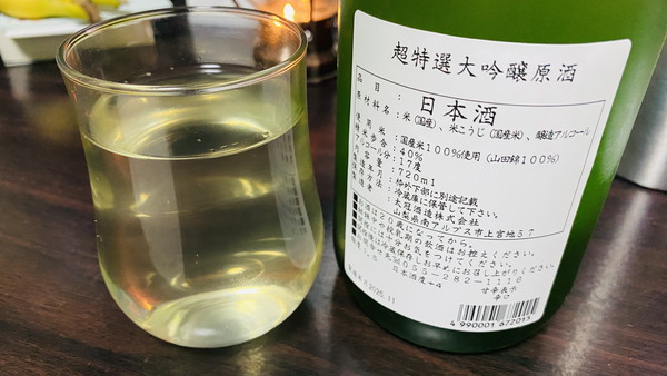 太冠「超特撰大吟醸原酒」の味|リンゴ系の香りと甘味に強めのアルコールっぽさが印象的で飲みやすい日本酒
