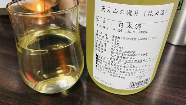 太冠「天目山の朧月」は、若々しく凛としたすもものようなフルーティーな香りと、バランス良い渋味、こもったはちみつのような甘味、微弱なフルーツ系の酸味が合わさった日本酒。